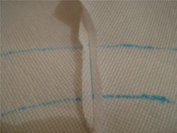 8) Тепер вставляємо стрічку завдовжки 25 см. Чому саме зараз? Відповідаю - синтетична підкладка весь час скошується, якщо у вас підкладка не з синтетики, то стрічку можна приколоти раніше