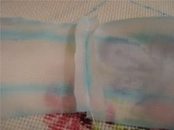 10) У незашитий отвір вивертаємо, беремо щось на кшталт кисточі (їй зручно вивертати куточки), у пензлика зручний кінчик, головне щоб у допоміжної палички не був гострий кінець, інакше можна пошкодити канву і зашиваємо потайним швом отвір через яке.